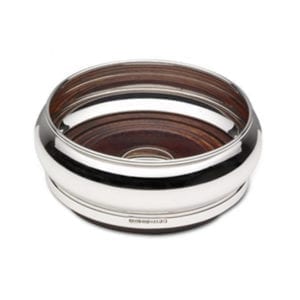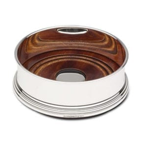 Our classic straight-sided hallmarked silver coaster is our premium item in this range. The piece is manufactured from heavy gauge silver and is the heaviest coaster in our collection. It also features a silver centre disc, suitable for engraving. The hallmarks are clearly marked around the edge, and the base is made from mahogany. The coaster will easily take a champagne bottle and makes the perfect addition to any tabletop.