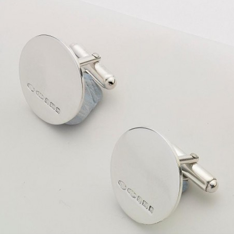 Hallmarked sterling silver round cufflinks featuring small hallmark. Supplied in an attractive presentation box.